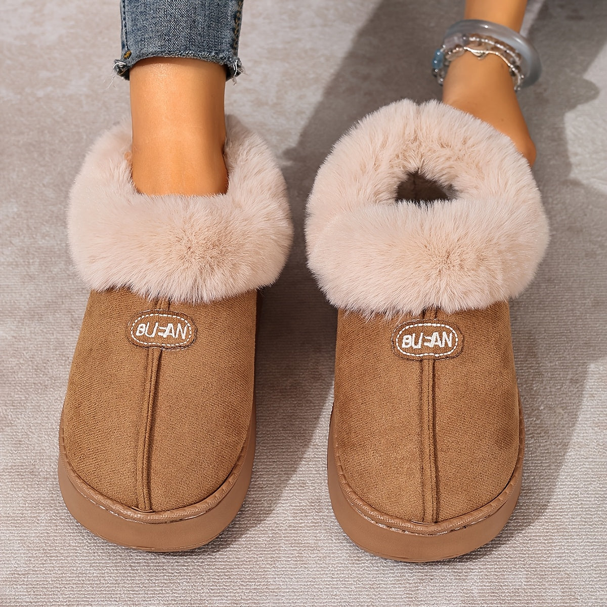 A Pair of Fashionable New Home Warm Foot Slippers, Faux Fur Design, Short Plush Warm Foot Sweat Absorption, EVA High Elastic Thick Sole Noise Reduction Wear-Resistant Non-Slip, Available in Black, Khaki, Brown, Gray, Pink, Essential for Home, Travel