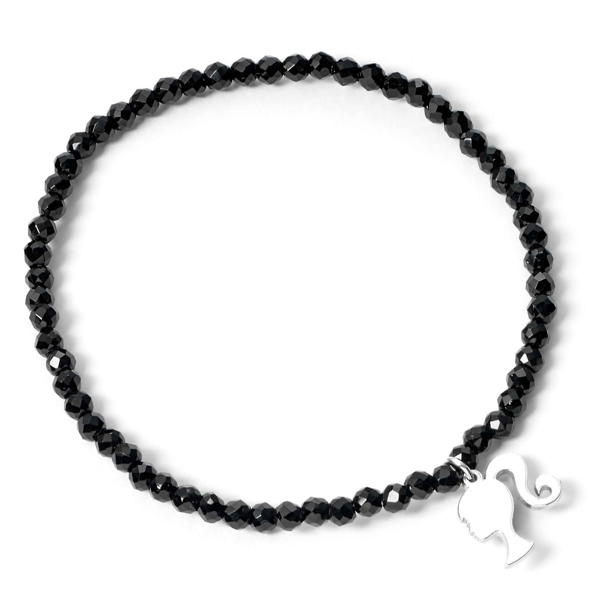 This bracelet is the perfect accessory for any occasion! Whether you're spending the day at the beach or attending a glamorous fashion event, the stunning black onyx design with quartz beads and sterling silver Barbie silhouette is sure to catch everyone's eye. This official jewellery collection for ages 14 and up is guaranteed to add a touch of sparkle and sophistication to any outfit. Pair it with the matching necklace, sold separately, for a complete and stylish look. Comes packaged in a beautiful gift envelope.