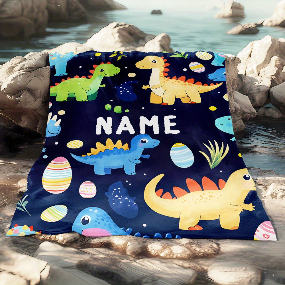 Wrap yourself in fun with this Custom Name Dinosaur Blanket! Made from soft, warm flannel, this lightweight throw features a charming cartoon dinosaur design. Perfectly cosy for snuggling on the sofa, bed, or even while camping.
