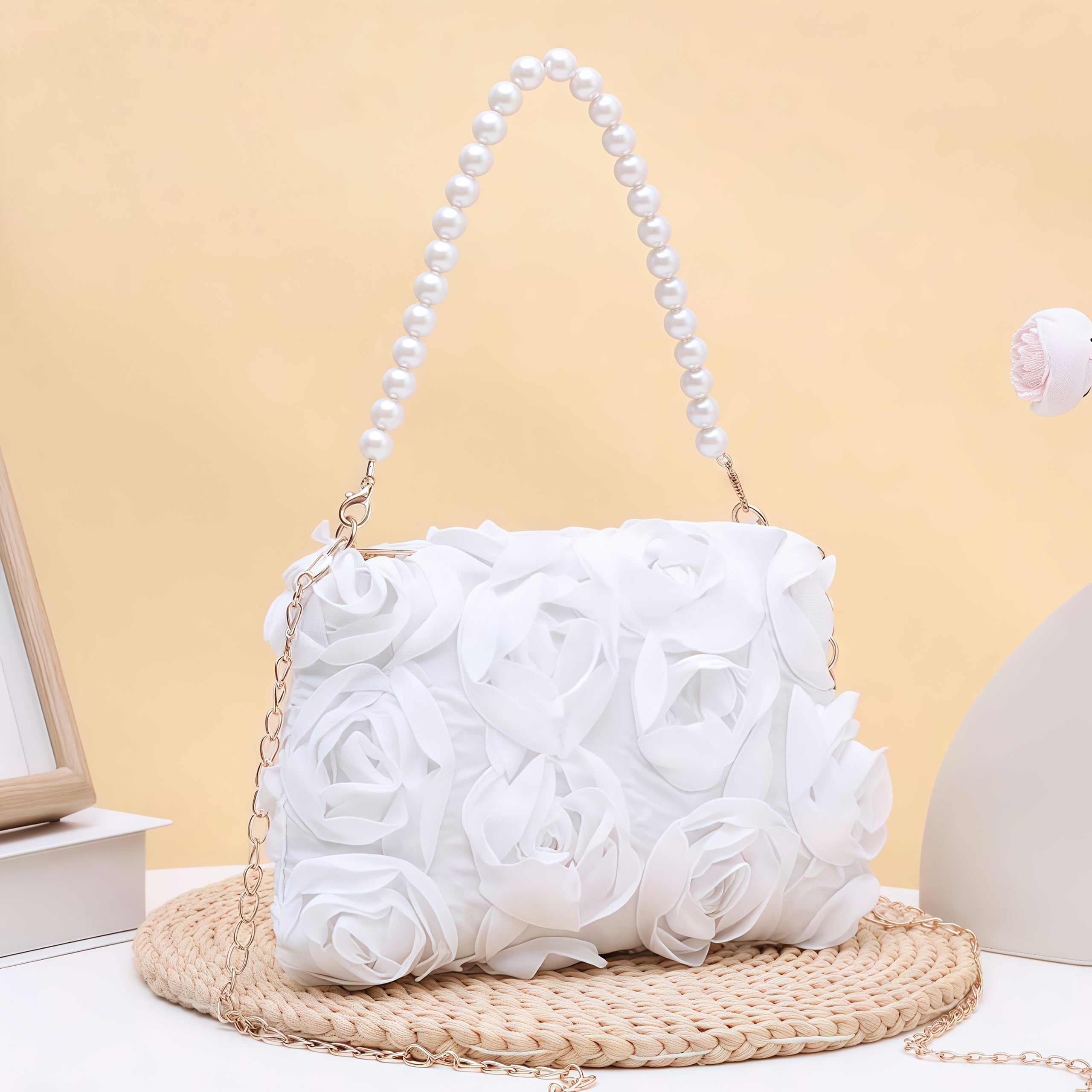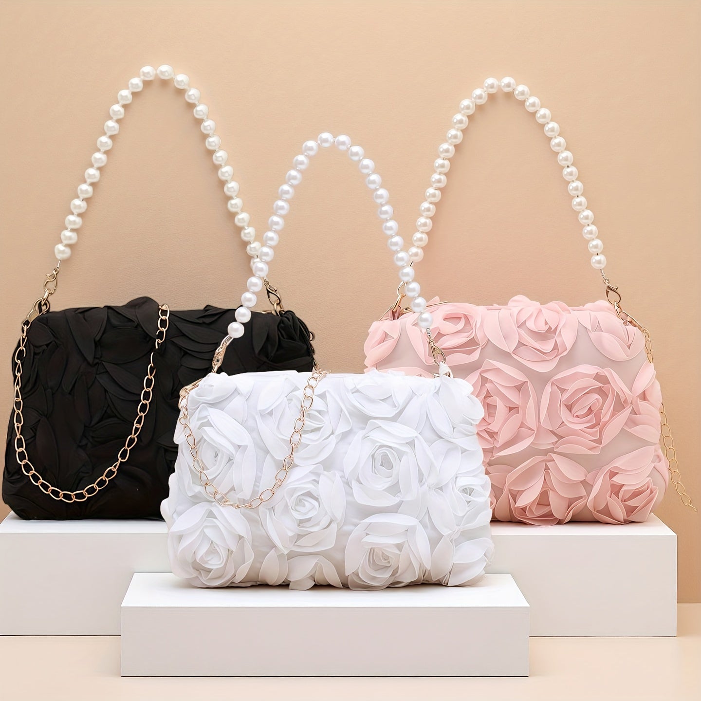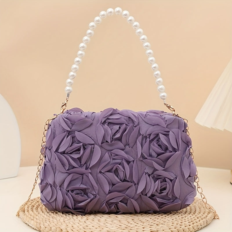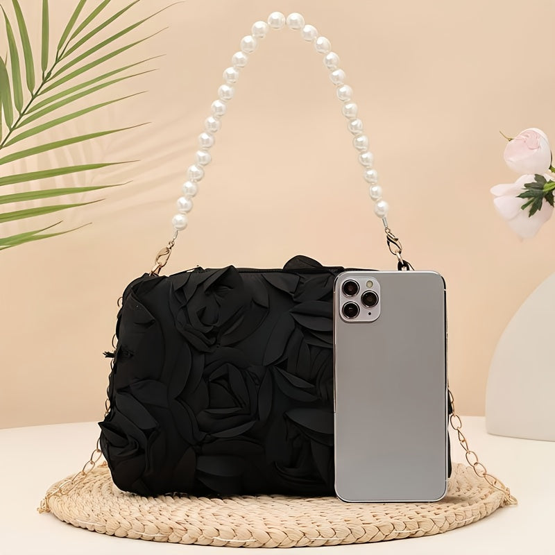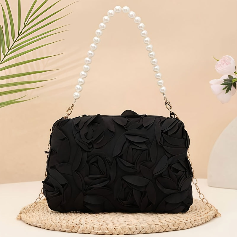 Carry your essentials in style with this charming floral clutch that's ready for any occasion. Featuring a detachable strap, you can wear it as a traditional clutch or sling it across your body for hands-free convenience. Perfect for weddings, proms, dinner parties, and all those moments that call for a touch of elegance. Available in classic black, crisp white, and romantic pink, this versatile evening bag complements any outfit and keeps you looking polished from ceremony to celebration.