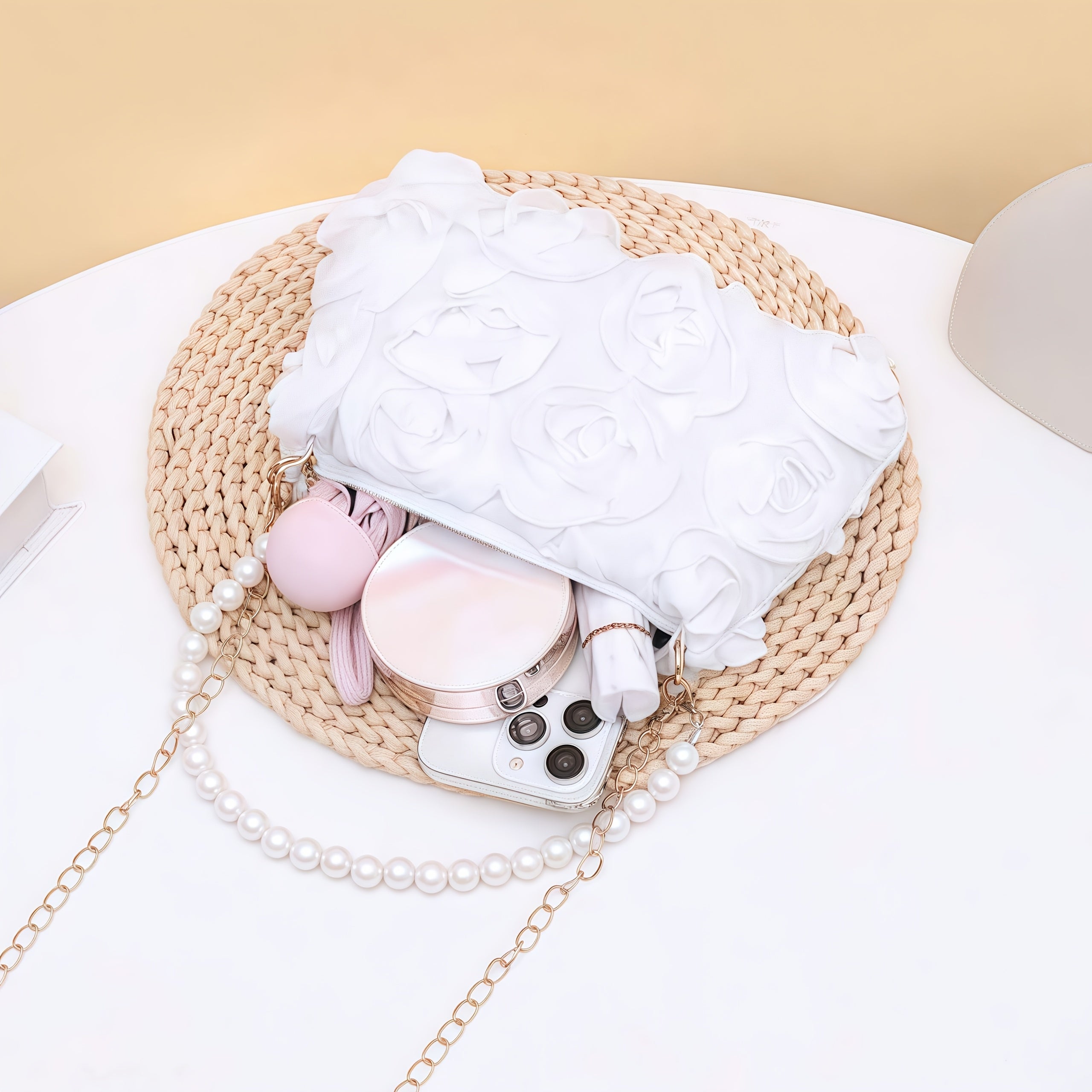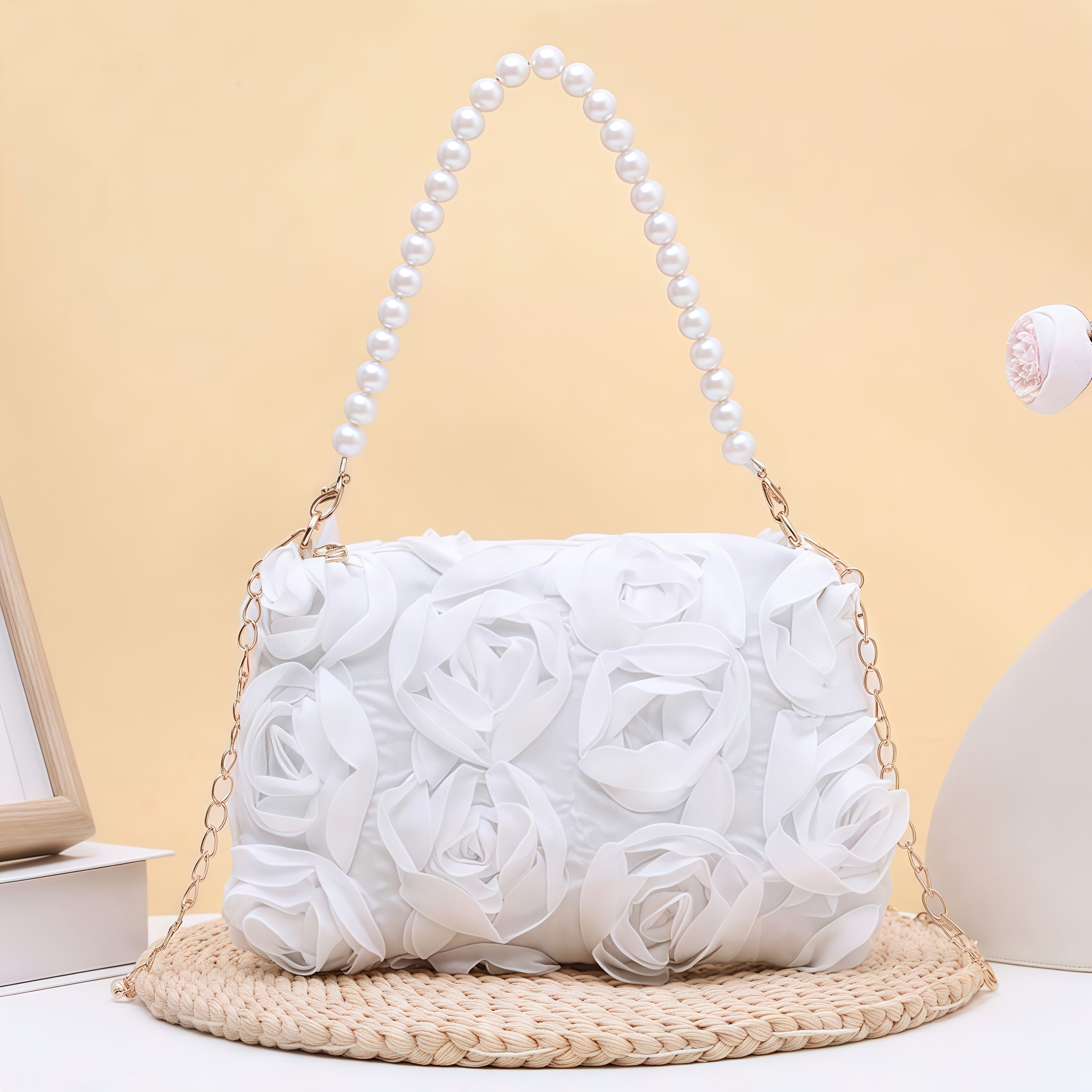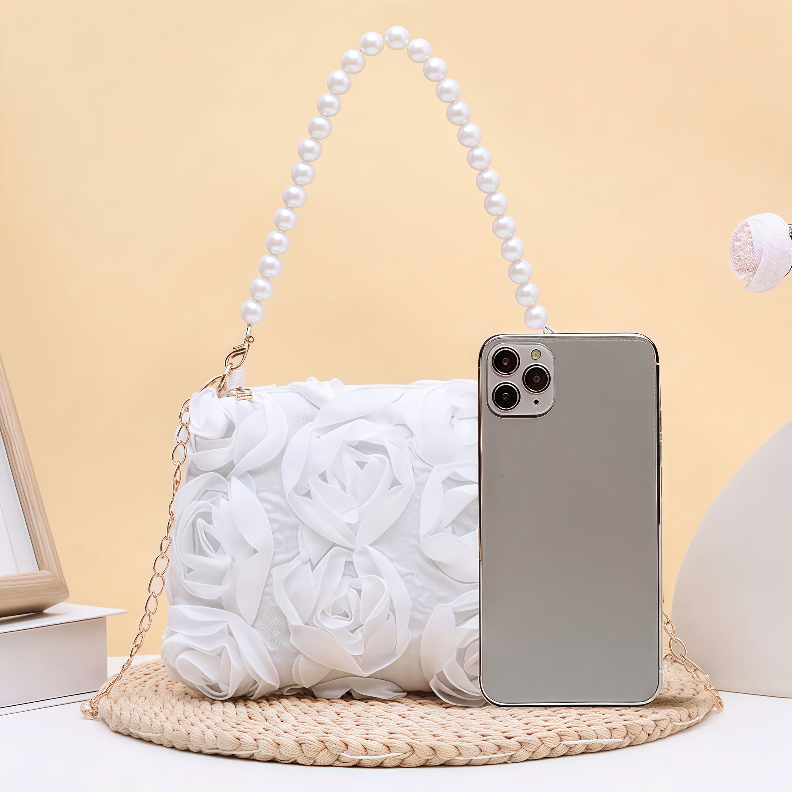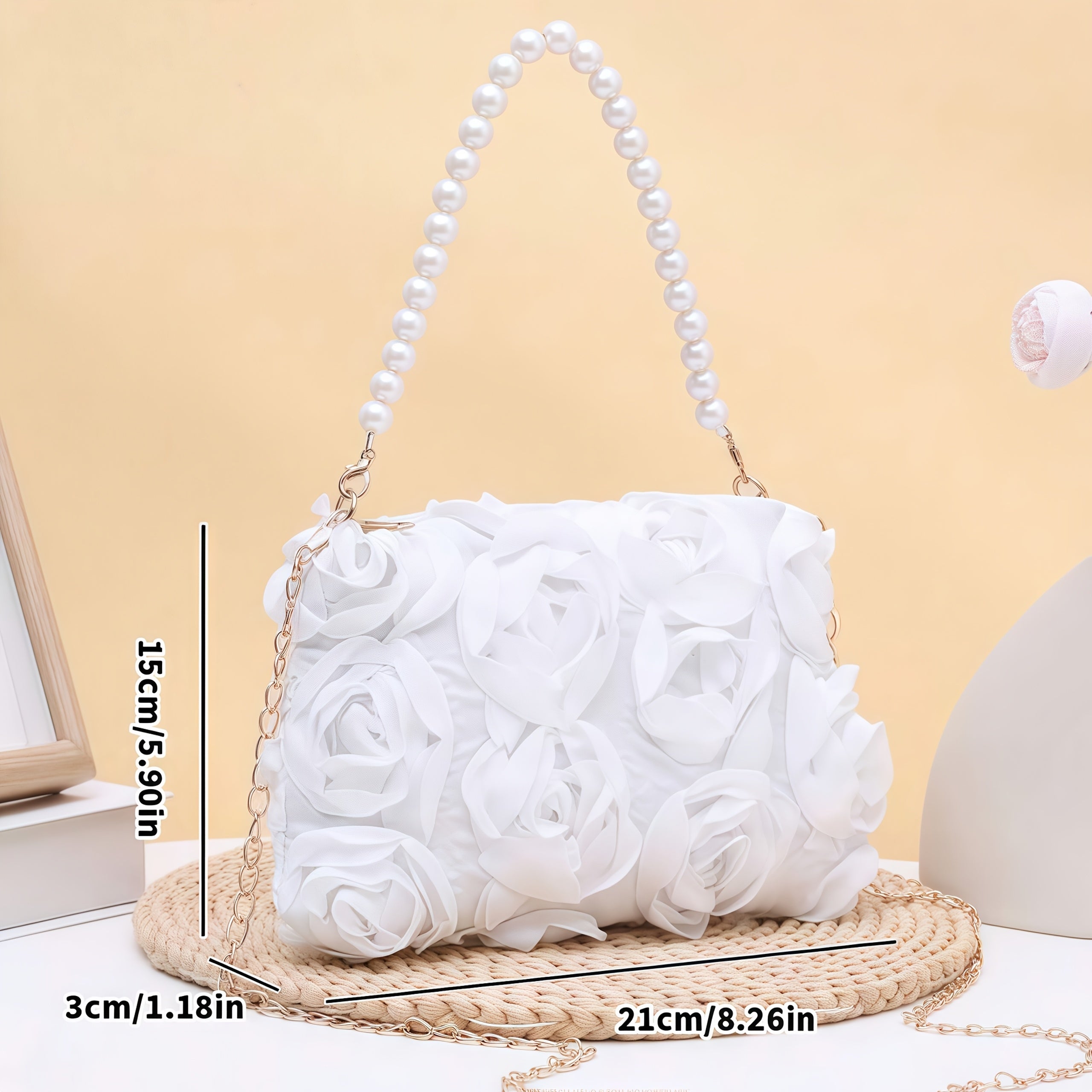 Carry your essentials in style with this charming floral clutch that's ready for any occasion. Featuring a detachable strap, you can wear it as a traditional clutch or sling it across your body for hands-free convenience. Perfect for weddings, proms, dinner parties, and all those moments that call for a touch of elegance. Available in classic black, crisp white, and romantic pink, this versatile evening bag complements any outfit and keeps you looking polished from ceremony to celebration.