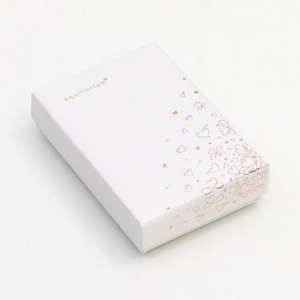 This necklace is presented in a beautiful Equilibrium branded gift box which is decorated with rose gold details. The writing on the interior of the gift box reads: