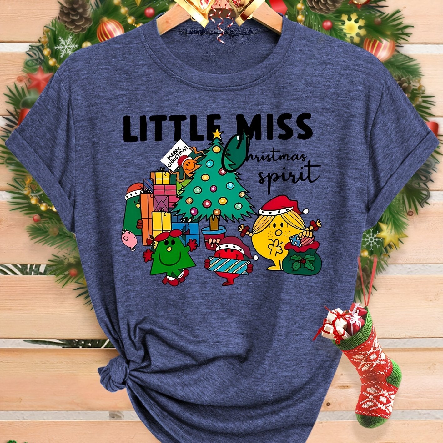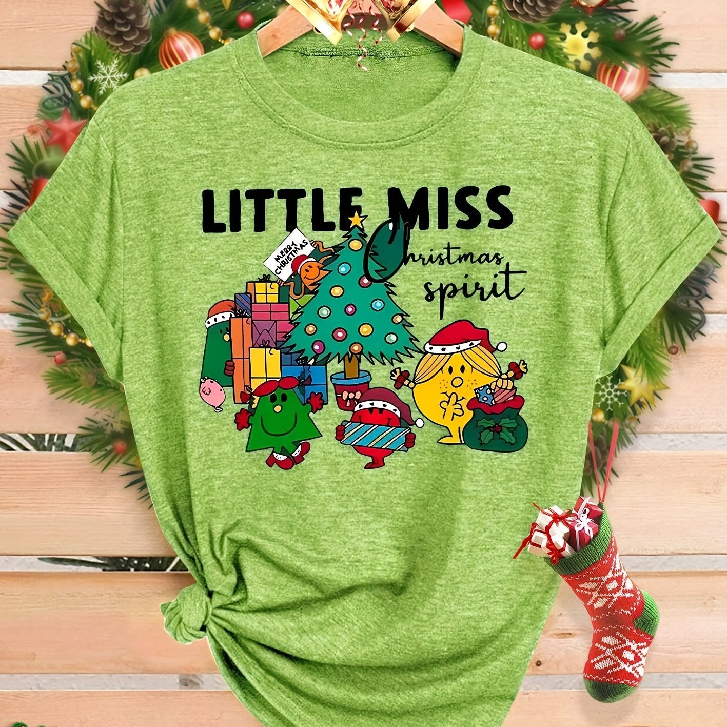 Celebrate the season with this playful Women's Little Miss Christmas T-Shirt, featuring adorable gingerbread and candy cane designs alongside charming Little Miss & Mr lettering. This casual tee offers a soft round neck and short sleeves for year-round comfort. Perfect for holiday parties or everyday fun, it comes in festive green and vibrant multi-color options, available in sizes 8 - 18