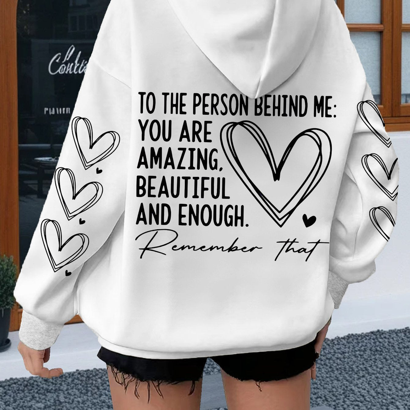 Women's Plus Size Inspirational Lettering & Heart Graphic Hoodie - Oversized Casual Pullover with Kangaroo Pocket, Drawstring Hood, All-Season Comfort, Machine Washable, Comfortable Fashion, Motivational Apparel, Relaxed Fit